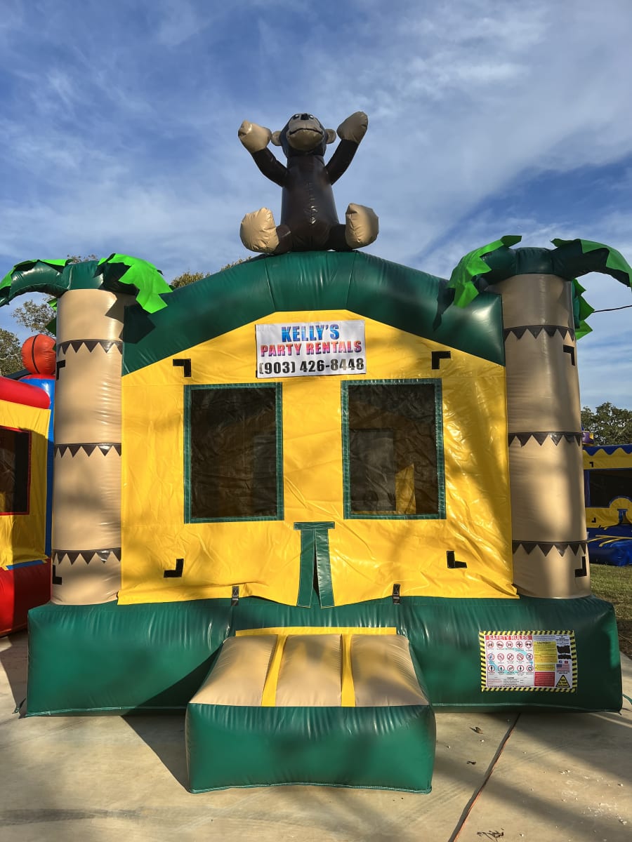 Kelly's Party Rental proudly delivers to a broad range of locations including Tyler, Flint, Bullard, Chandler, Frankston, Lindale, Jacksonville, Whitehouse, Arp, and Troup. We ensure that our bounce houses, including this delightful jungle-themed option, are delivered and set up safely and on time for your event.