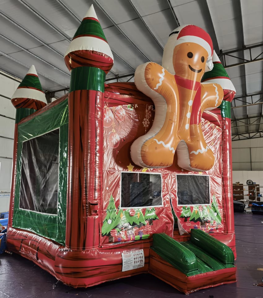 - Christmas Theme: The bounce house is adorned with 3D gingerbread figures and festive decorations, creating an eye-catching and joyful atmosphere that captures the holiday spirit.