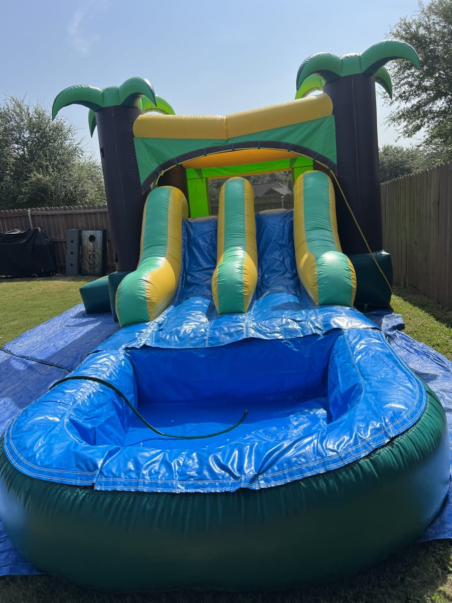 3. Included Accessories Each rental of this wet inflatable includes a non-removable attached water hose. Remember, removing the hose will incur additional charges. We also provide one tarp to place under the inflatable and a 50ft extension cord (12 gauge) to ensure easy setup. Please note, you will need to provide a water hose to fill the pool as we do not supply one.