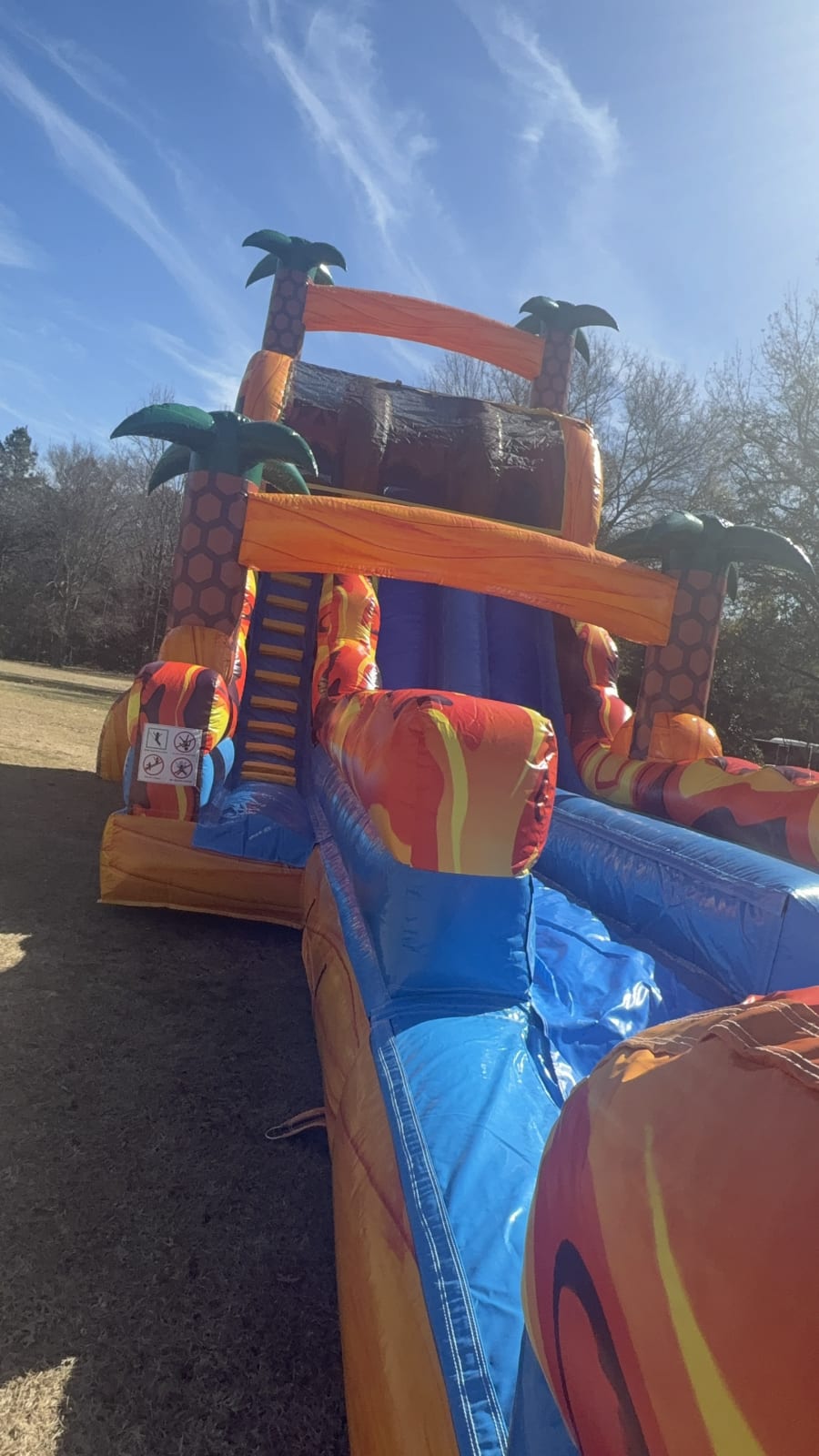 We deliver and professionally set up the 22’ Tropical Fiesta Waterslide (Wet & Dry) throughout East Texas, including Tyler, Flint, Bullard, Chandler, Frankston, Lindale, Jacksonville, Whitehouse, Arp, and Troup. Our team ensures the slide is safely positioned, securely anchored, and fully ready for use before your event begins.