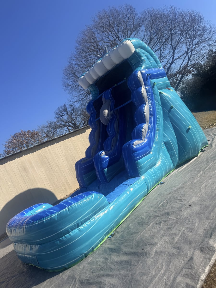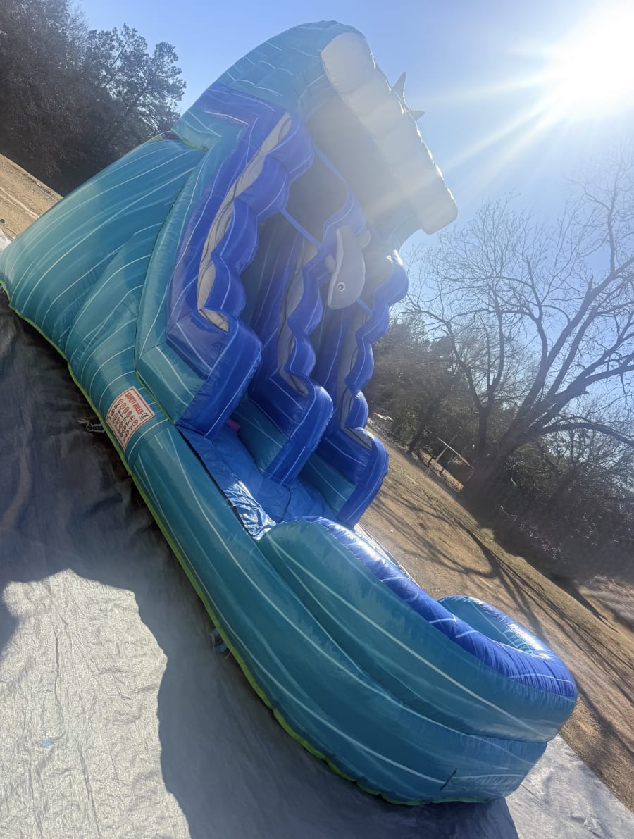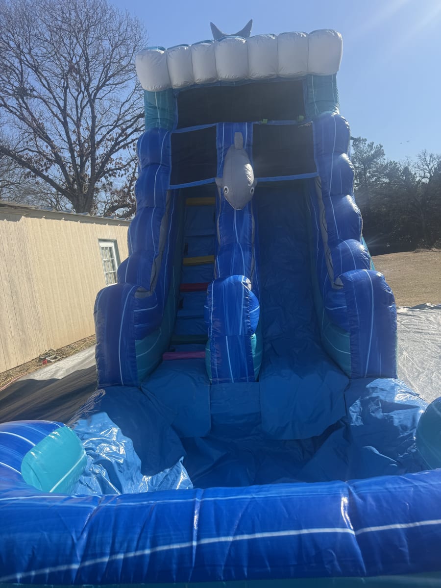 We deliver and professionally set up the 16’ Dolphin Water Slide throughout Tyler, Flint, Bullard, Chandler, Frankston, Lindale, Jacksonville, Whitehouse, Arp, and Troup. Our team ensures the slide is securely anchored, positioned correctly, and fully ready before your guests arrive.