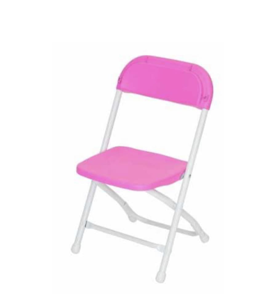 Brighten up your children's event with our Kids' Folding Chairs in charming pink from Kelly's Party Rental. These chairs are specifically designed for young guests, ideal for children aged one to seven years, providing a delightful and safe seating solution for birthday parties, school events, or any children-focused gatherings.