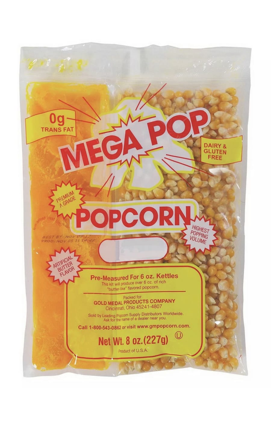 Comes with all you need for perfect popcorn. Oil and salt included. Can serve 8.oz