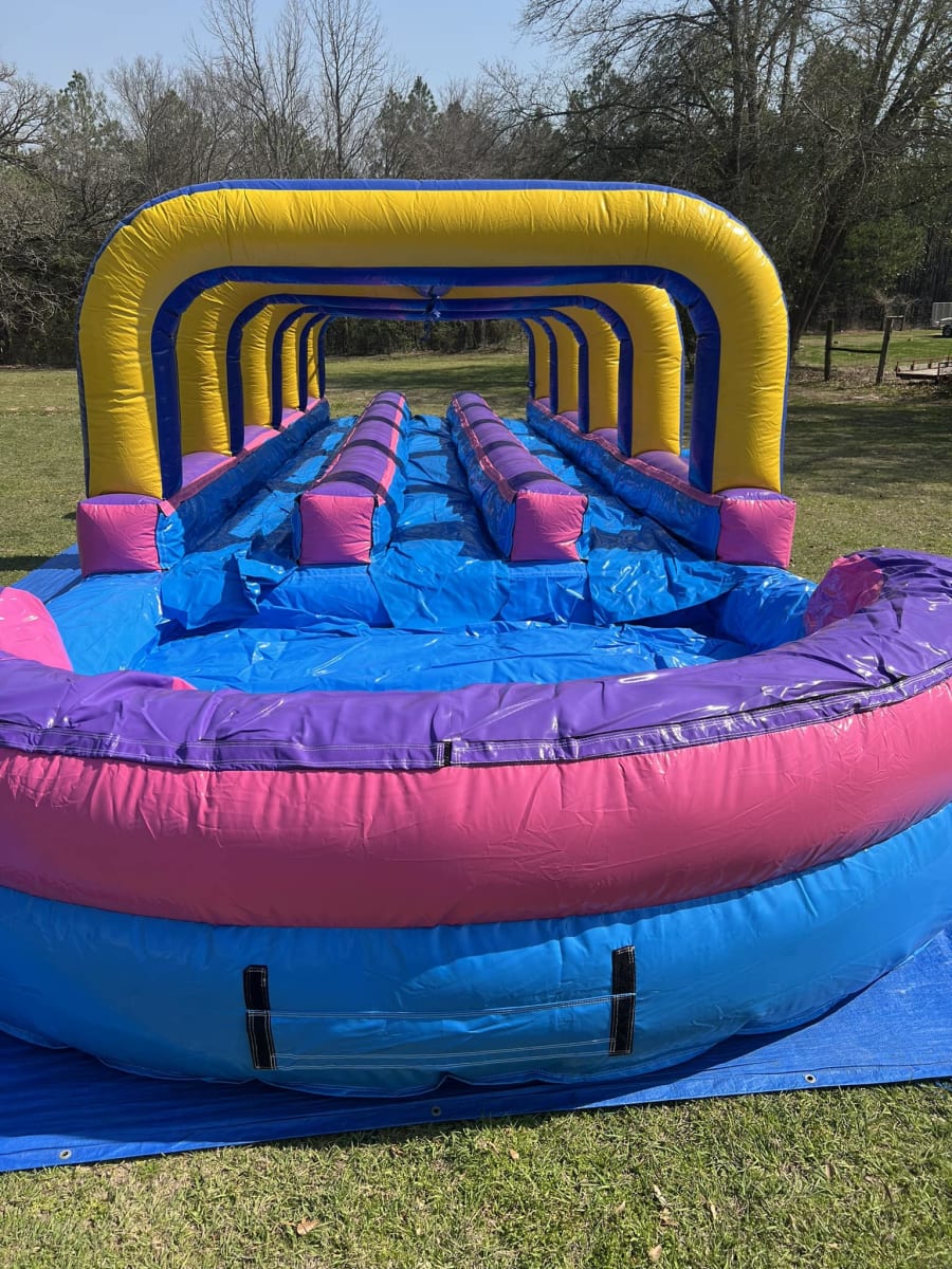 You need to provide a clear, flat area for the bounce house. If you’re renting a water slide, you’ll also need a water hose to fill the pool. We provide a 50ft extension cord, but if your power source is farther away, you may need to provide an additional cord.