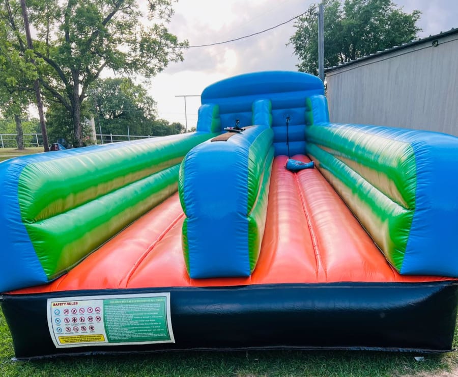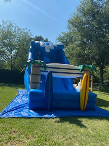 We take care of most of the setup, but you will need to make sure there is a flat, clear space ready for the bounce house. If you’re renting a water slide, you’ll need to have a water hose to fill the pool. We provide a 50ft extension cord for power, but if the power source is farther away, an additional cord may be necessary.