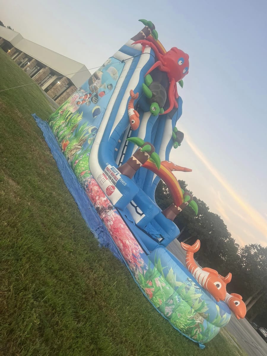 We take care of most of the setup, but you’ll need to ensure the space is clear, flat, and free of debris. If you’re renting a water slide, you will need to provide a water hose to fill the pool. We provide a 50ft extension cord for power, but if your power source is farther than that, you may need an additional extension cord.