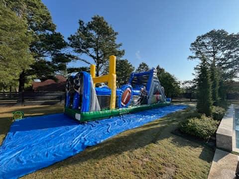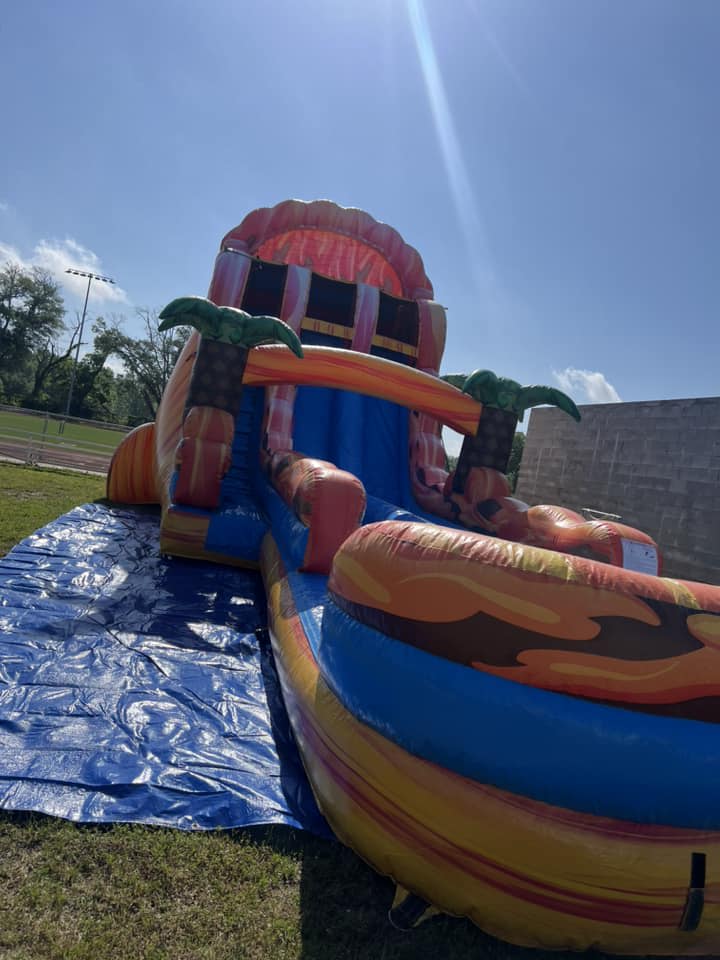 We take care of most of the setup, but you will need to ensure the setup area is clear and has a flat surface. If your event is using a water slide, you will need to provide a water hose to fill the pool. We also provide a 50ft extension cord, but if your power source is farther than that, you may need to supply additional cords.